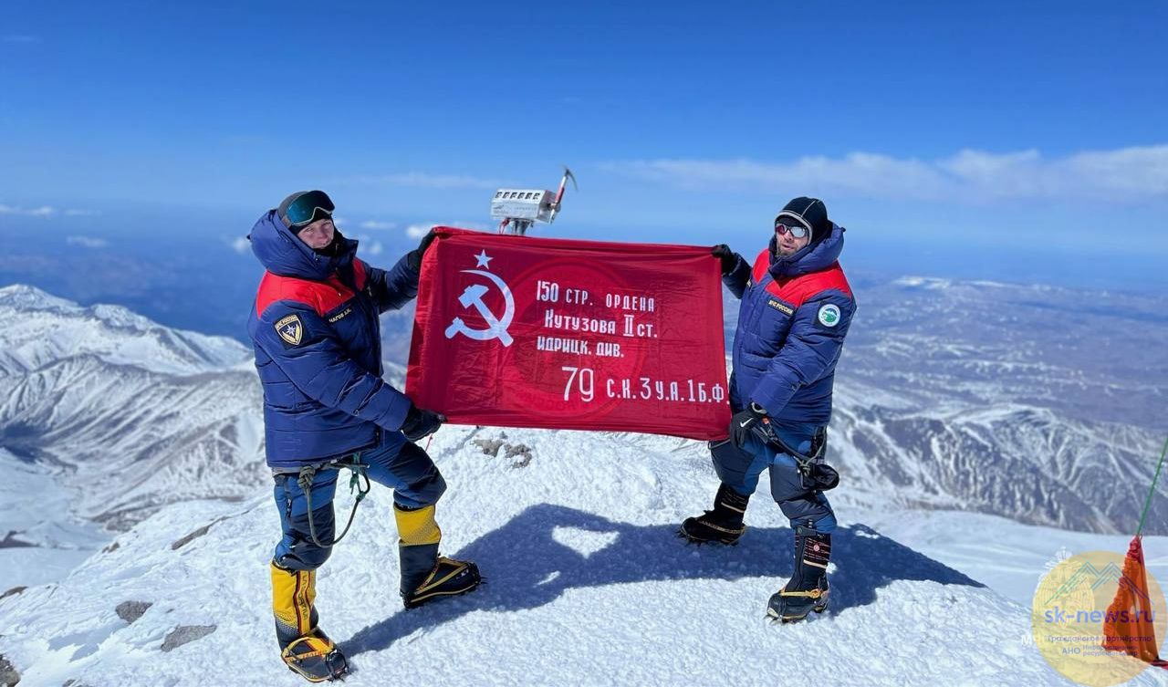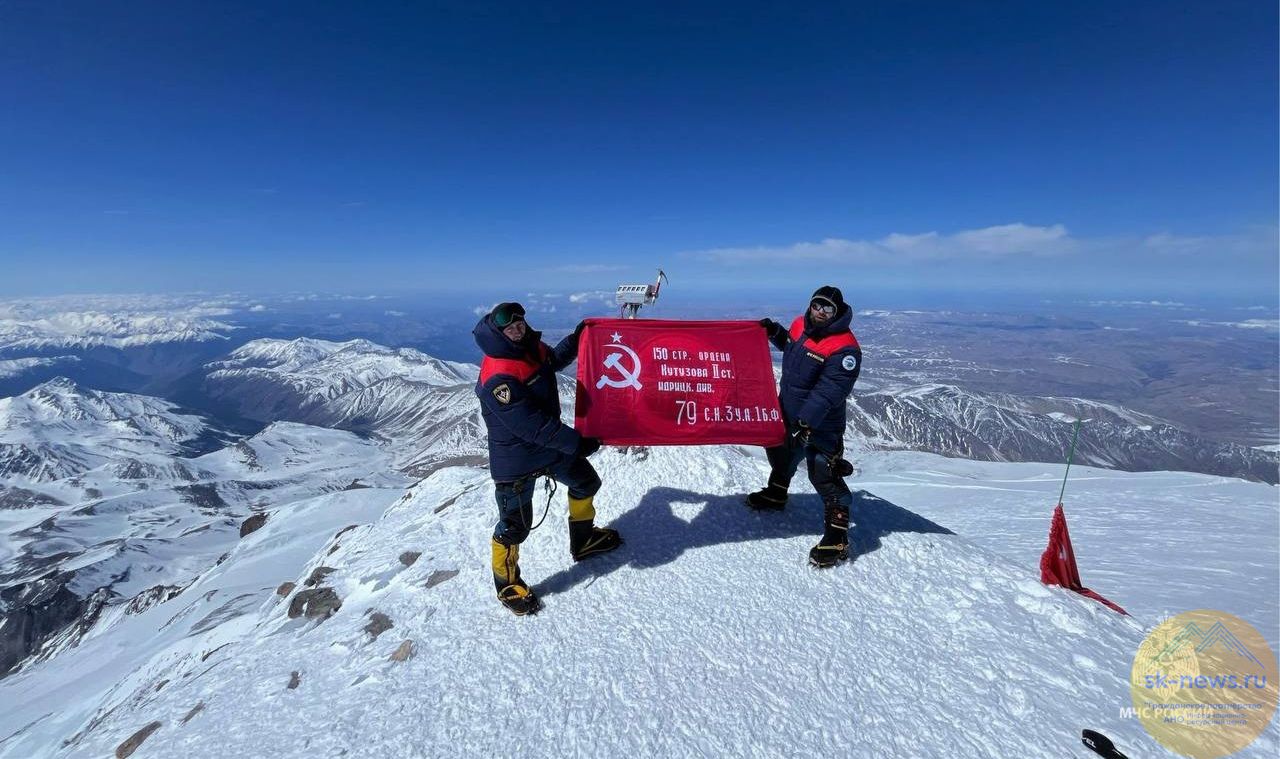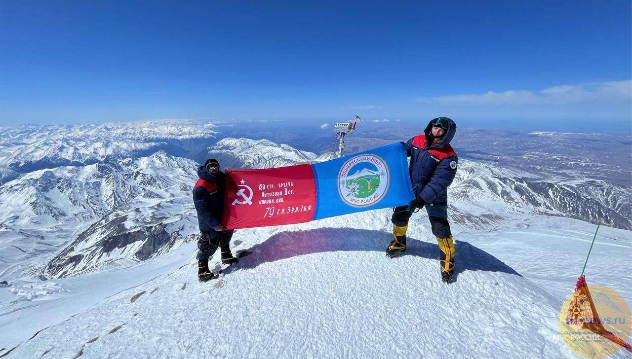Взойдя на Эльбрус, они развернули Знамя Победы на высочайшей вершине Европы.