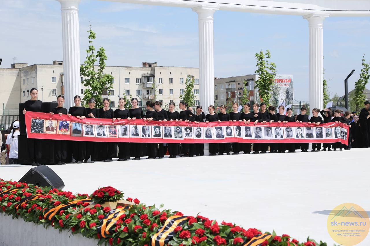 Во время праздничной программы, посвященной 80-летию Победы, в исполнении творческих коллективов прозвучали песни о Назире Канукоеве и Алиме Байсултанове. Это и есть народная память, из которой никогда и ничего не стирается.