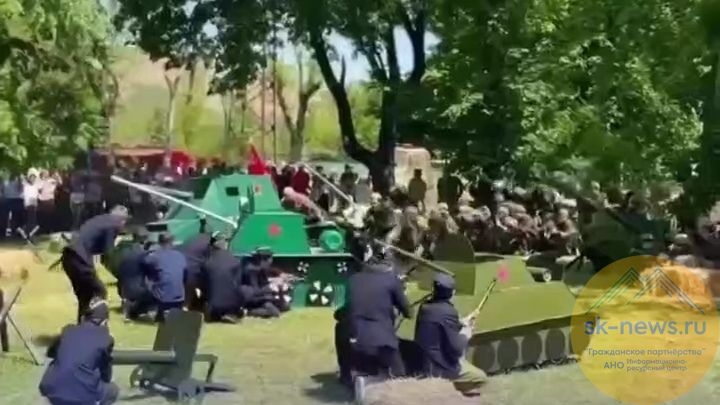 В парке села Атажукино развернулась масштабная историческая реконструкция: костюмы, макеты оружия и техники, профессиональная игра актеров, пиротехнические эффекты – все это позволило максимально погрузиться в события прошлого.