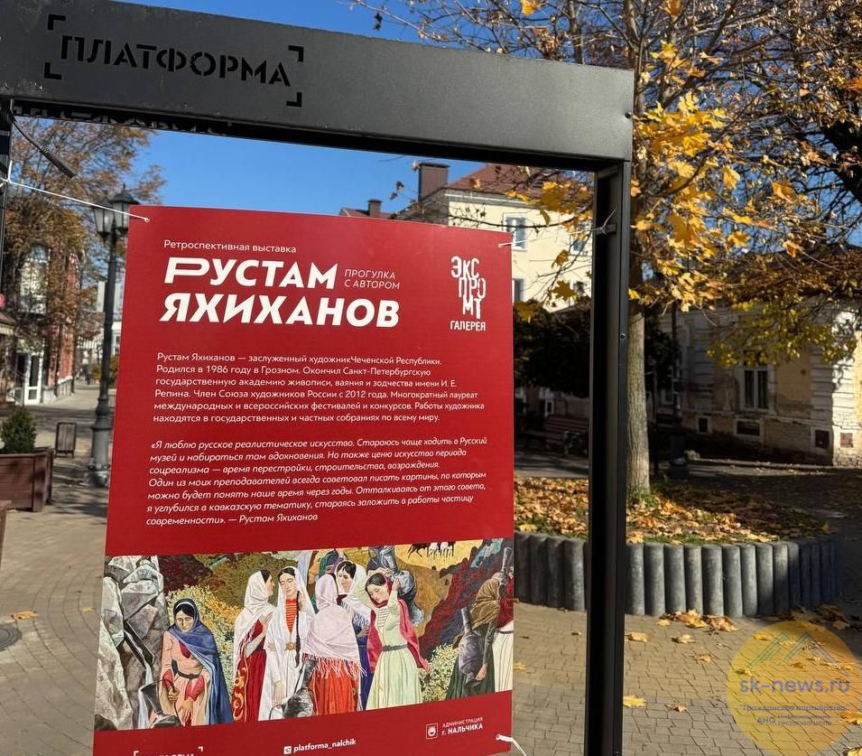 В Нальчике в честь Дня народного единства на пешеходной улице Кабардинской открылась выставка заслуженного художника Чеченской Республики Рустама Яхиханова.