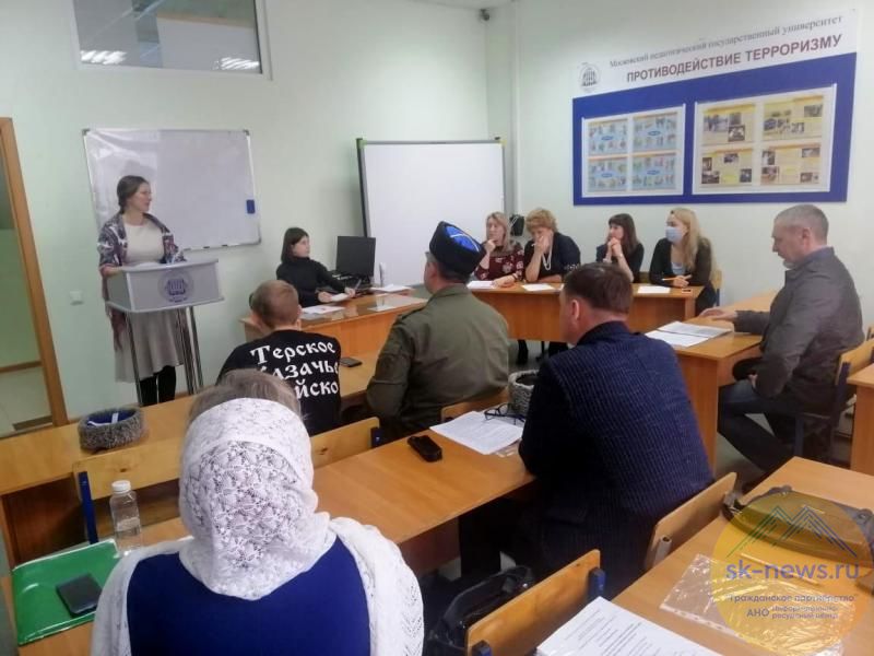 В рамках проекта провели пять онлайн-школ, семинары и тренинги. Их слушателями стали более ста тысяч человек. Завершающим мероприятием проекта стали курсы профпереподготовки 20 казаков края, работающих или планирующих быть педагогами в казачьих классах или молодежных казачьих клубах. В результате онлайн-обучения в ставропольском филиале Московского педагогического госуниверситета они получили специальность педагога-психолога. На днях в филиале прошли экзамены и защита выпускных работ (на фото).
