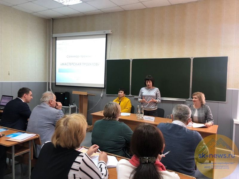 Региональная общественная организация «Ресурсный просветительский центр» и Общественная палата края при поддержке правительства СК обучали руководителей и специалистов НКО «Мастерская проектов» по разработке проекта для конкурса президентских грантов. В семинаре участвовала начальник управления по взаимодействию с институтами гражданского общества аппарата правительства Наталья Адаева. Модераторы: председатель Ставропольского отделения Российского общества «Знание» Валентина Братусина, доктор социологических наук, независимый эксперт в области социального проектирования из Москвы, доктор социологических наук Ирина Осипова.