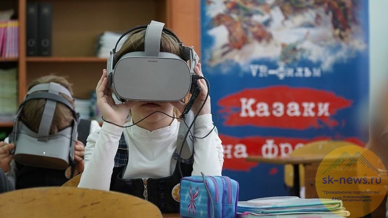 В очках виртуальной реальности (25 комплектов на класс) дети могут увидеть шесть учебных фильмов о различных периодах истории казачества, быте, культуре, участии казаков на фронте в годы Великой Отечественной войны. Каждый фильм снят в формате VR 360.