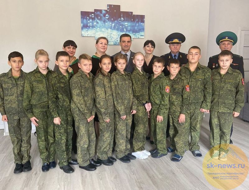 На открытии комнаты председатель Совета ветеранов пограничной службы по Ставрополью Павел Соловьёв вручил кадетам памятные значки.
