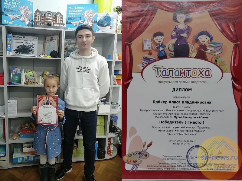 Воспитанница центра молодежного инновационного творчества Алиса Дайкер победила в номинации «Компьютерная графика» с работой «Обои Малевич», основанной на творчестве знаменитого отечественного авангардиста. Произведение выполнено с помощью цифровой графики на современном оборудовании.