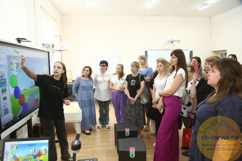 Гости с большим интересом рассматривали новое интерактивное оборудование колледжа, на котором ведется подготовка участников чемпионата. Набор «Уроки робототехники «Мататалаб» для маленьких программистов, интерактивная песочница, интерактивная панель для дидактических игр, интерактивная доска Смарт, конструкторы «Лего» и другие новшества техники по стандартам национального финала WSR впечатлили преподавателей СПО из Луганска.