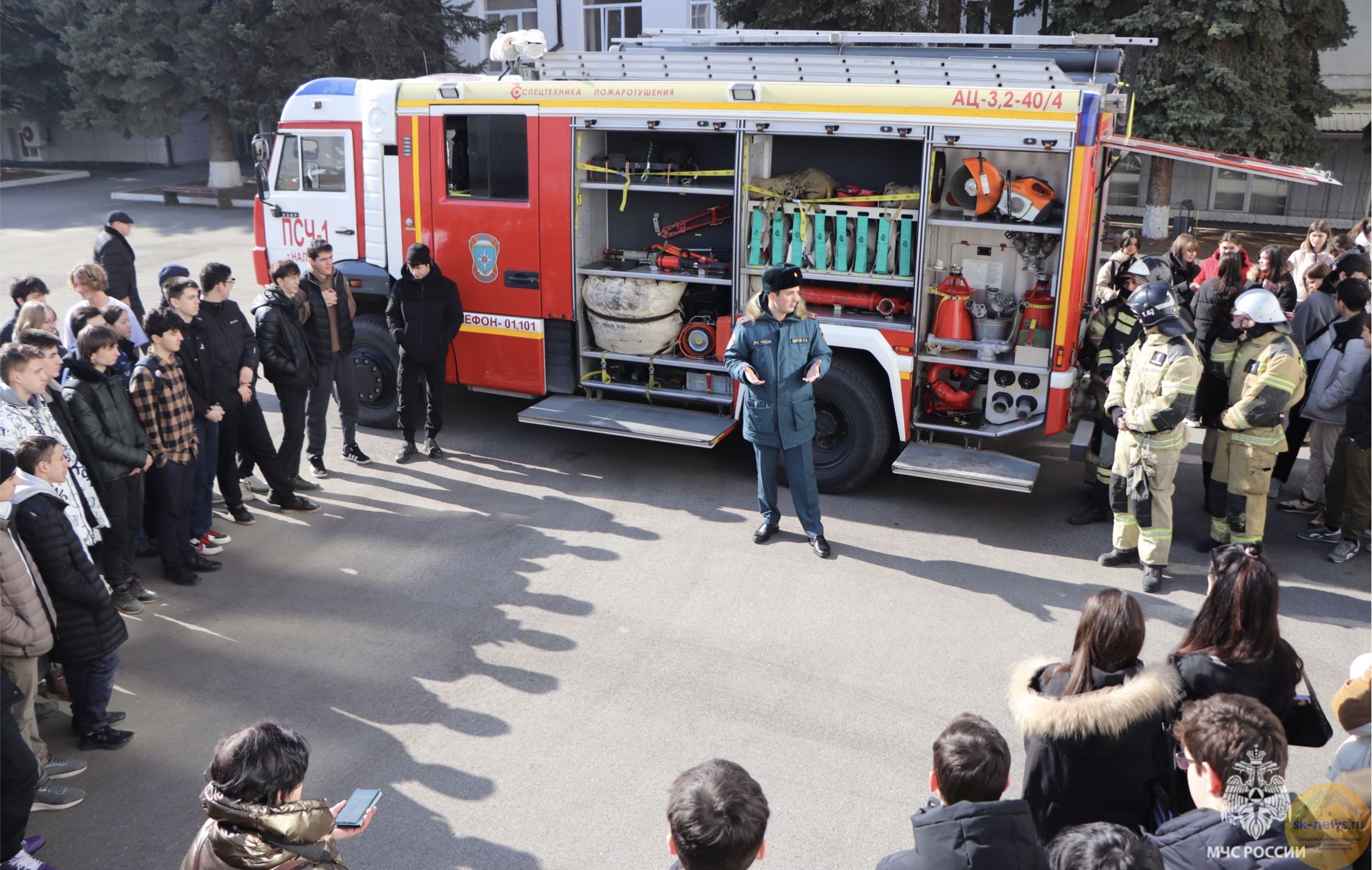 Студенты с большим интересом осматривали технику и задавали пожарным вопросы, на которые получали подробный ответ. Ребятам была предоставлена возможность самим подержать в руках пожарно-техническое вооружение, которым оснащены пожарные автомобили и примерить на себя боевую одежду пожарного.