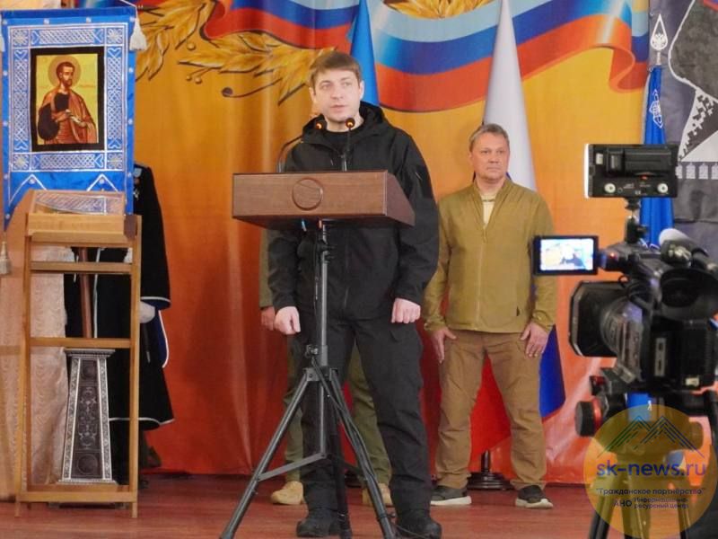 Атаман Всероссийского казачьего общества Виталий Кузнецов отметил, что сегодня в бригаде семь казачьих подразделений, среди них есть интернациональный батальон «Каспий». Он пожелаю всем общей победы, а братьям-казакам вернуться живыми и здоровыми.