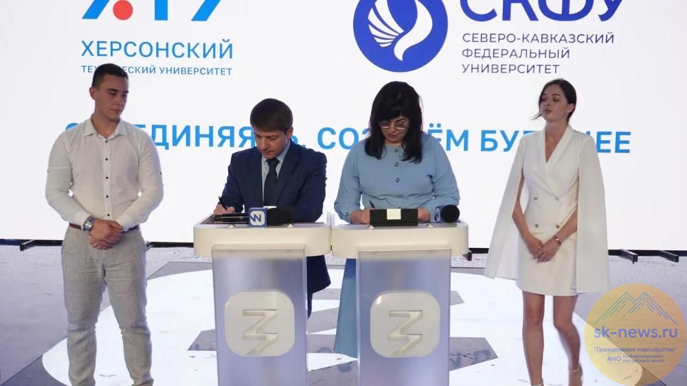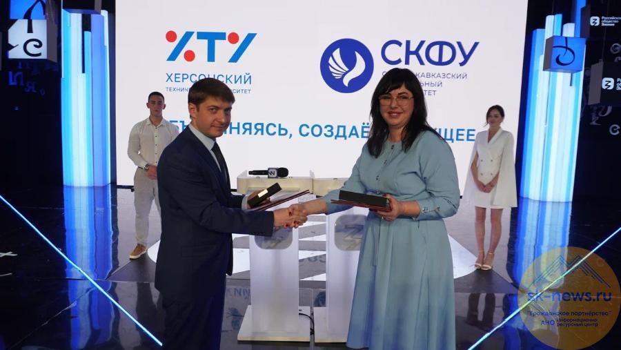 На «Дне вузов» на выставке-форуме «Россия» на ВДНХ, организованном Министерством науки и высшего образования РФ и Российским обществом «Знание» 31 мая подписано соглашение о сотрудничестве между университетами. Оно предполагает партнерство в образовательной, научной и проектной деятельности и открытие научно-образовательного центра мирового уровня «Продовольственная безопасность». Совместные исследования ХТУ и СКФУ будут направлены на рекультивацию солончаковых и засушливых почв. Это позволит вернуть в сельхоз оборот тысячи гектаров земель, создать новые рабочие места в регионе и обеспечить продовольственную безопасность страны. Мероприятие посетили председатель совета Фонда развития цифровой экономики, экс-советник Президента России Герман Клименко, директор Департамента координации деятельности образовательных организаций Минобрнауки РФ Виталий Гришкин, директор Департамента государственной молодежной политики и воспитательной деятельности Минорбнауки РФ Дмитрий Покровский и глава Департамента по работе с образовательными организациями Российского общества «Знание» Альбина Бикбулатова.