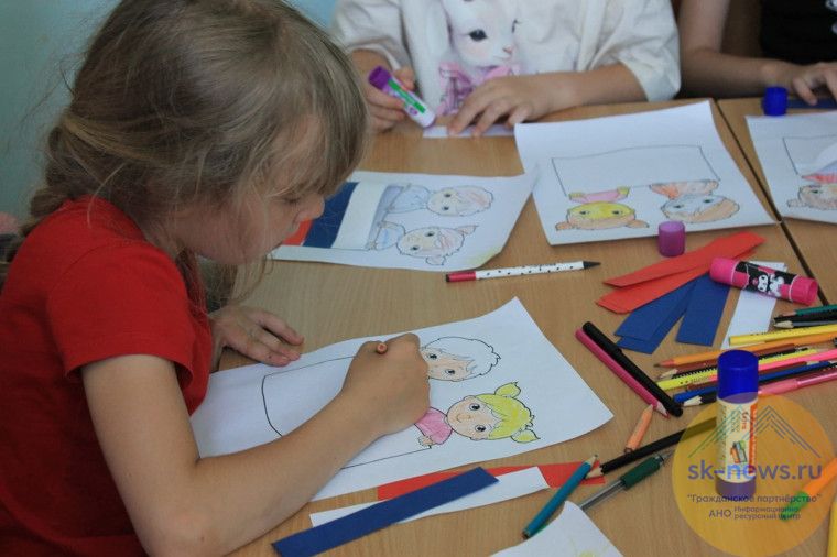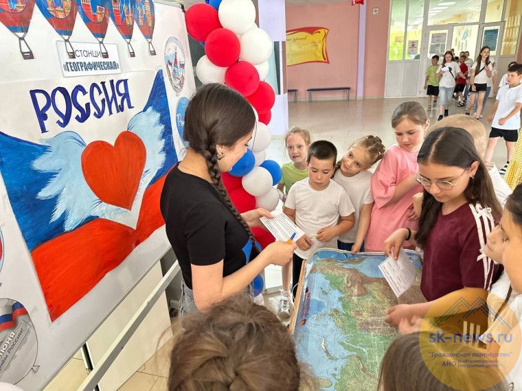 В лагерях школы № 22, 47, гимназии № 24 ребята закрепили представления о назначении государственной символики, узнали о значении цветов российского флага. А еще с воодушевлением слушали гимн России, пели песни, играли на народных шумовых инструментах, показывали элементы русского танца. Они поговорили и о том, что такое Родина, а потом активно отвечали на вопросы. Также в рамках Всероссийской акции «Дарю тепло» в 47 школе учились плести нашлемники для наших защитников, расписывали наволочки для раненных бойцов, написали слова благодарности и пожелания скорейшего выздоровления на кружках для бойцов, находящихся в госпитале. А в школе 43 для ребят провели постанционную игру «Путешествие по России». На каждой станции путешествия ребят ожидало интересное задание. А на одной из станций ребята создали фреску из песка. В школе № 34 дети нарисовали один из ярких символов нашей страны - русскую матрёшку.