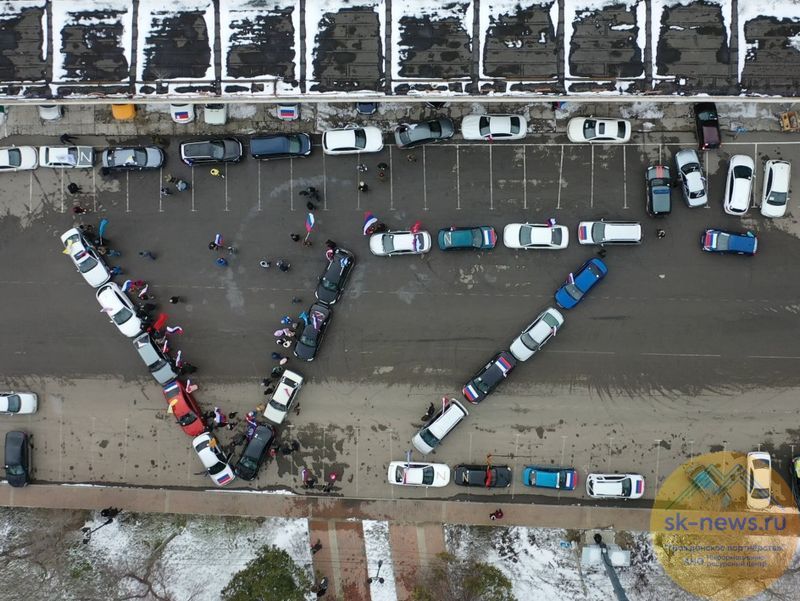 В завершение акции участники составили из машин две огромные буквы «Z» и «V».
