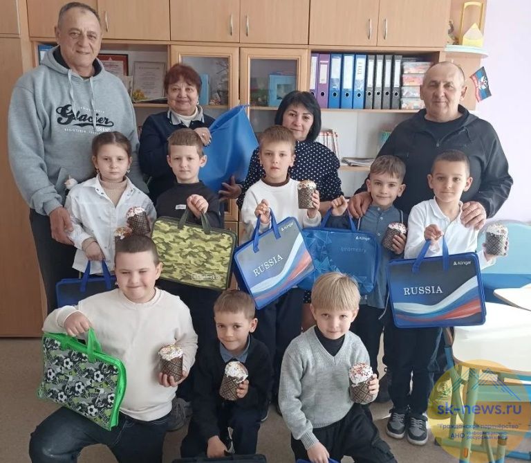 Особое внимание ставропольчане уделили оснащению учебного процесса. Для детей гости привезли необходимые школьные принадлежности и рюкзаки, карандаши, краски и альбомы для рисования, пробковую доску для проведения уроков. На пасхальной неделе, конечно, отвезли детям и куличи.
