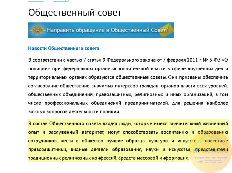 В пресс-службе управления SK-NEWS.RU сообщили, что порядок формирования общественных советов при территориальных органах МВД России утвержден Указом Президента РФ от 23 мая 2011 г. №668 «Об общественных советах при Министерстве внутренних дел Российской Федерации и его территориальных органах».