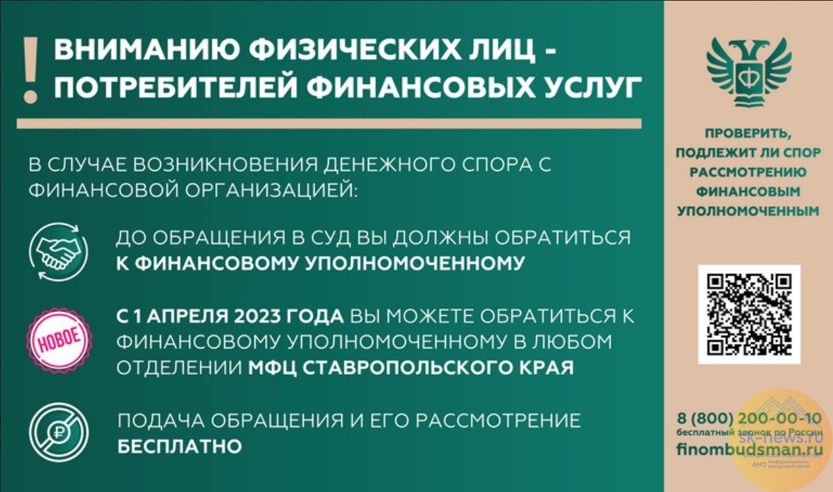 Обращение финансовому уполномоченному с 1 апреля 2023 года можно подать в любом отделении МФЦ Ставропольского края.