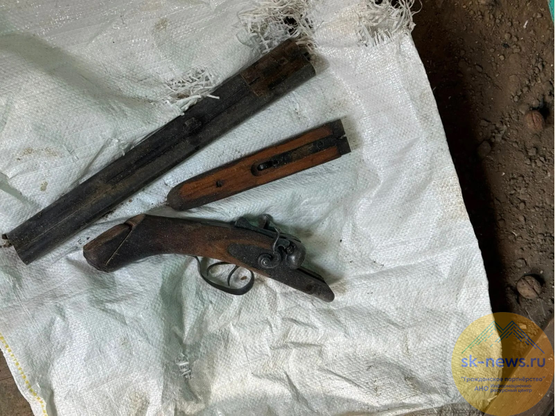 Сотрудники уголовного розыска и кинологи отдела МВД России получили информацию и провели обыск в домовладении 53-летнего селянина. Полицейские извлекли из-под земли мешок, в котором оказался разобранный обрез двуствольного охотничьего ружья.