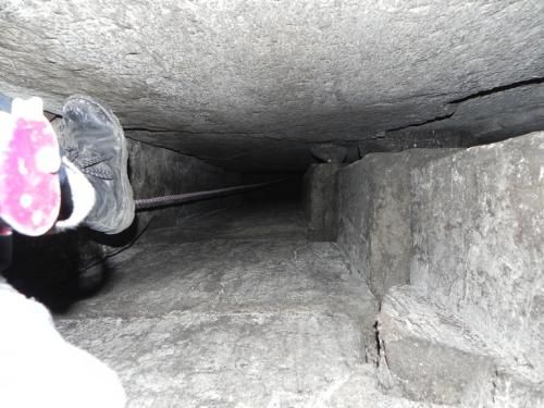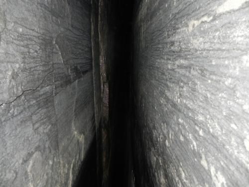 По словам исследователей, найденная пещера не имеет аналогов среди подобного рода комплексов - судя по всему, она рукотворна. Выходящая на вершину горы шахта - это две цельные каменные плиты, поставленные параллельно, с боковинами, заложенными аккуратными небольшими камнями. Несколько шахт ведут в огромный 36-метровый подземный зал. Одна из его стен и свод тщательно отшлифованы. Найденную шахту Котляровы считают вентиляционной - об этом говорит ее узость и постоянный приток свежего воздуха.