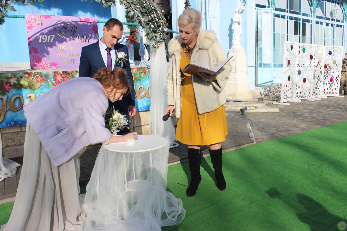 Ровно трёхсотая в этом году регистрация новой семьи прошла в торжественной обстановке на площади перед «Пушкинской галереей». Этими счастливыми молодожены, которые возрождают добрую старую традицию обмениваться кольцами у подножья горы Железной, существовавшую ранее в Железноводске много лет, стали Алексей Гаценко и Александра Чухнова.