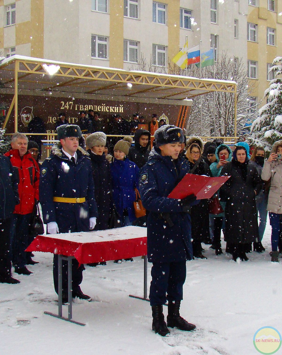 Военную присягу принимали в 247-м гвардейском десантно-штурмовом Кавказском казачьем полку юные новобранцы осеннего призыва 2017 года. «Дни открытых дверей» проходят в период весеннего и осеннего призывов на военную службу в войсковых частях, дислоцирующихся в Ставропольском крае, в соответствии с государственной программой «Патриотическое воспитание граждан РФ на 2016-2020 г.г.» и распоряжением правительства Ставрополья «О патриотическом воспитании и допризывной подготовке молодежи Ставропольского края».