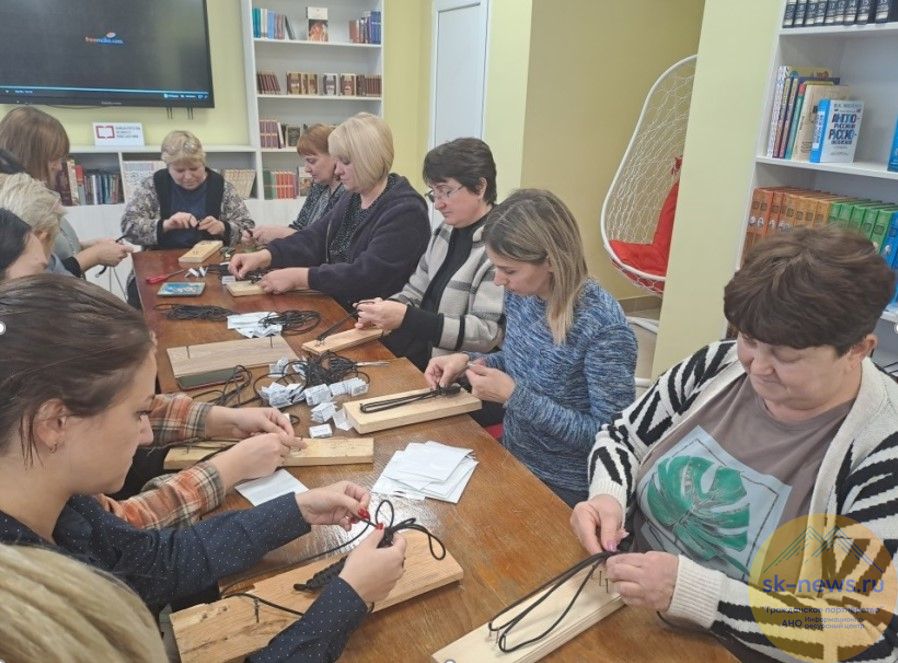 Библиотекари совместно с ребятами принимали участие в добровольческой творческой лаборатории «С вами Бог и сила». Участники лаборатории вышивали платочки–обереги со словами «Спаси и Сохрани», которые вместе с освященными иконками были переданы бойцам.