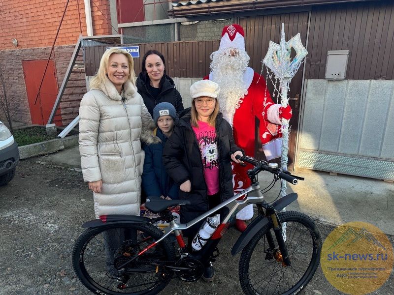 Она мечтает о велосипеде. Домой ей «железного коня» доставили Ольга Тимофеева и Дед Мороз. В семье растёт и маленький Артур. Сегодня ему подарили магнитный конструктор. Сладкие подарки дети получили и от главы Изобильненского района Романа Коврыги.