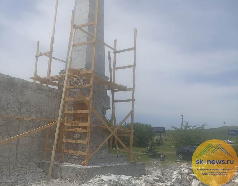 Уже прошли демонтажные работы, установили леса на памятной стеле, начали армирование. Завершат реставрацию в конце осени.