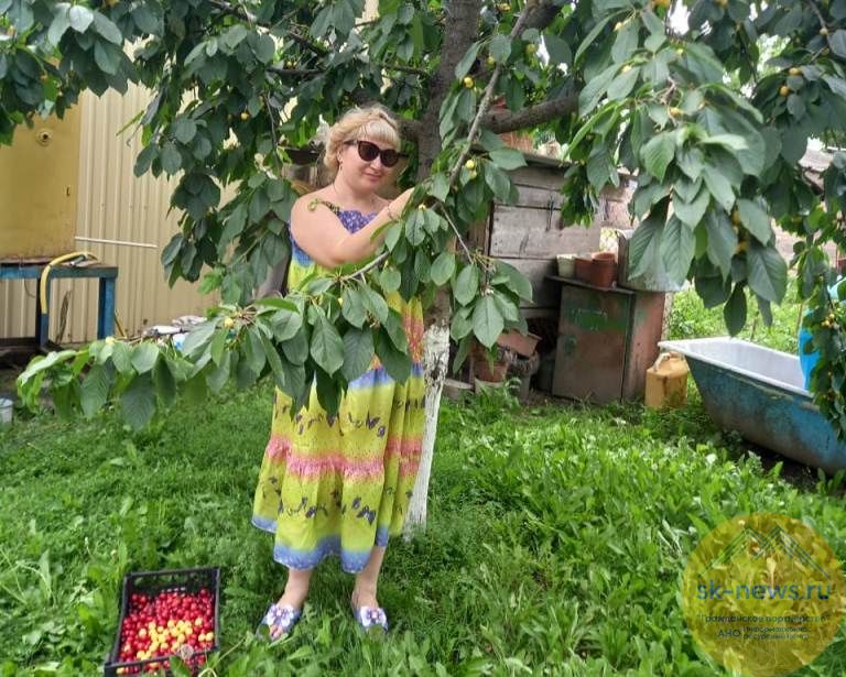 На фото SK-NEWS.RU – журналист информационного портала «Северо-Кавказские новости» собирает черешню в одном из дворов города Прохладный.