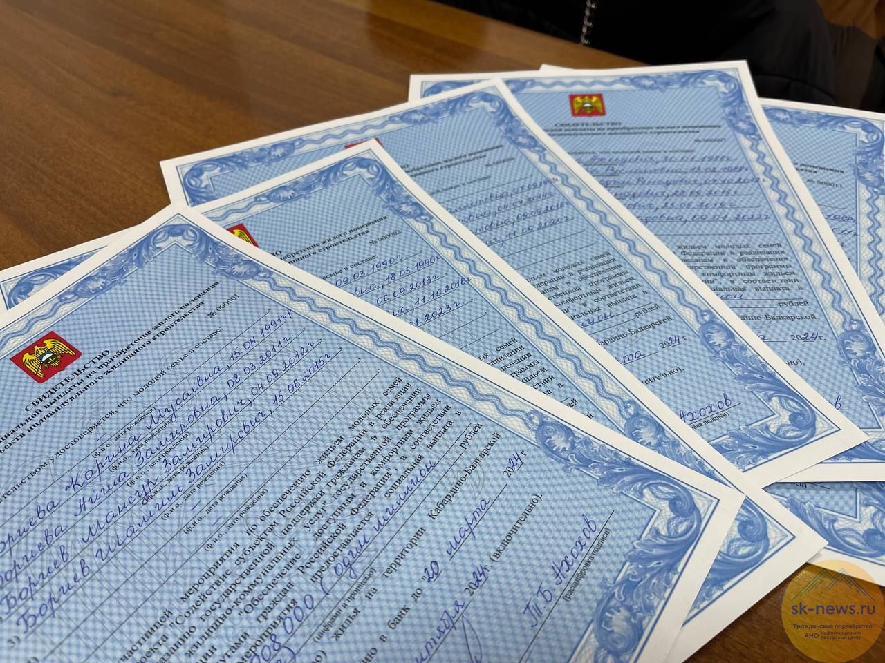 15 молодых семей, состоящих на учете нуждающихся в улучшении жилищных условий при администрации г.о. Нальчик, получили свидетельства.