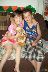 Алине 6 лет. Она очень добрая, ласковая, покладистая, общительная и жизнерадостная девочка. Легко идет на контакт. Глядя на нее, невозможно поверить, что ей пришлось пережить большое горе. Ее брату Денису 10. Он взрослее и более осознанно воспринимает все, что происходит в его жизни. Денис активный и любознательный мальчик, любит быть в центре внимания, но обидчив, что вполне понятно: ему очень не хватает родительского тепла и домашнего уюта. Он только приехал из детского санатория «Кавказ», где отдыхал вместе с другими ребятами из «Намыса», не видел сестру больше месяца и очень соскучился. Когда он вошел в группу к Алине, девочка бросилась его обнимать. Так они и не разомкнули объятий, пока корреспондент их фотографировал. На вопрос, кого они любят больше всех на свете, Денис отвечает: «Алину», - а Алина: «Дениса». Ребятам нужны забота и внимание. Их будущие родители не должны их разлучать.