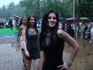 И настал звездный час дерзких и красивых – не побоявшись намокнуть и расклеиться, на сцену вышли двадцать красавиц – участниц республиканского конкурса «Мисс КБР 2011». Они вновь собрали вокруг себя разбегающуюся от дождя публику. Заставили с восхищением смотреть, как промокшие до нитки, но с улыбками на устах, красотки, демонстрируют сногсшибательное дефиле в вечерних платьях и грациозность осанки.