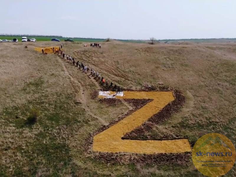 Таким образом жители Грачевского округа выразили свою поддержку Вооруженным Силам России. Буква имеет высоту 22 метра и ширину 20 метров. Большая буква Z видна издалека всем проезжающим по федеральной трассе.