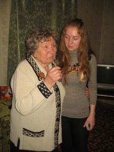 Ребята побеседовали с ветераном Ниной Виницкой, возглавляющей первичную организацию ветеранов войны и труда наркологического диспансера, в котором она проработала много лет. Нина Васильевна родом со Ставрополья. Когда началась война, ей было 16 лет. «В июне сорок первого я принимала участие в соревнованиях по легкой атлетике, проходивших на острове Хортица. Там нас застал голос Молотова, который сообщил, что немцы вероломно, без объявления войны напали на нашу страну. Никогда не забуду его голос и голос Сталина. Я и сейчас не могу без слез вспоминать войну, не могу смотреть фильмы о войне, потому что все это мы испытали».