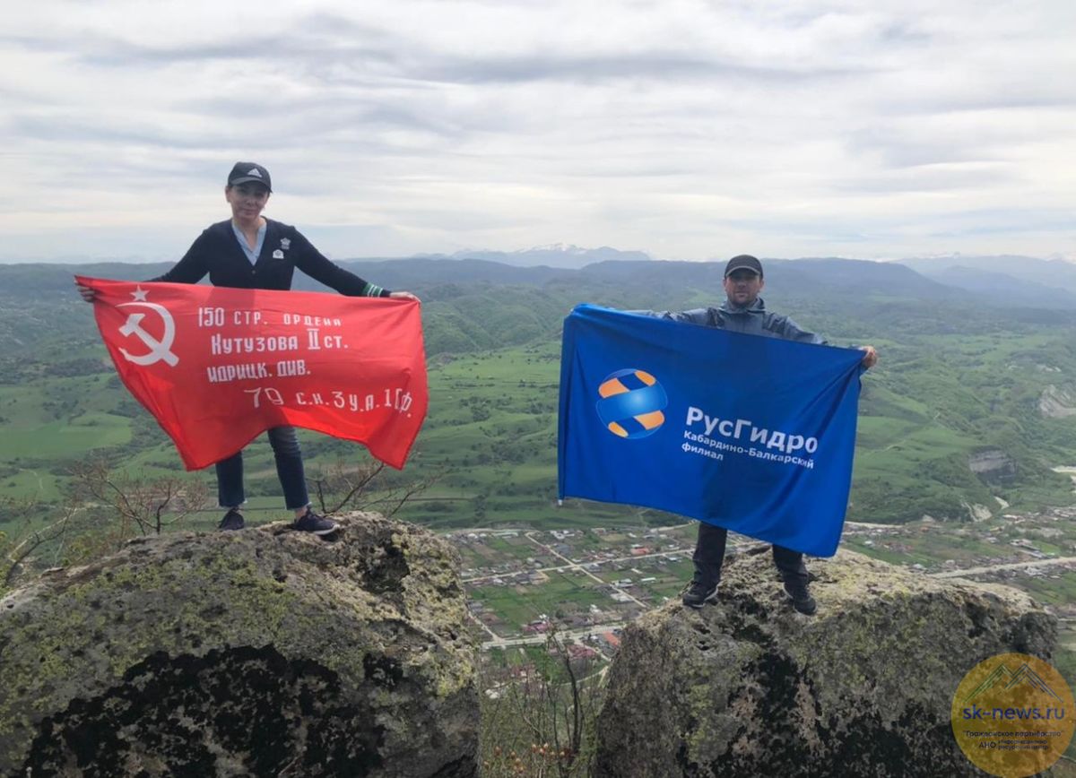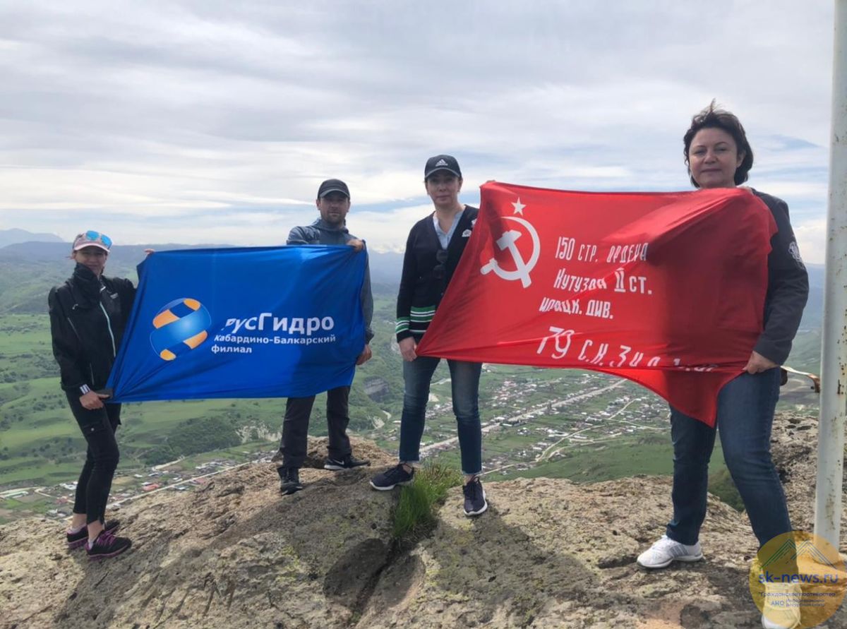 Сотрудники Кабардино-Балкарского филиала РусГидро накануне 9 мая в честь 76-летия Победы осуществили восхождение на гору Хара-Хора и водрузили на ее вершине Знамя Победы и флаг РусГидро.