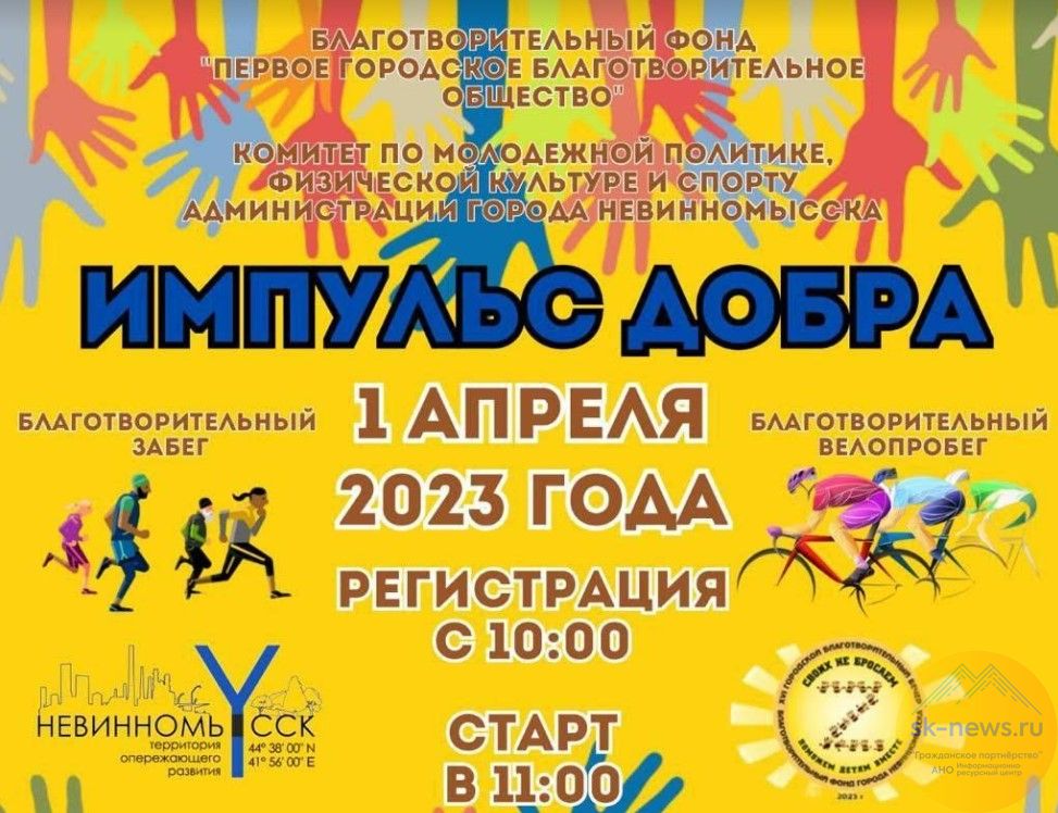 1 апреля в 10:00 часов стартует традиционный благотворительный забег и велопробег «Импульс добра». Сбор на площади возле ДК Химиков, в 10:00 – регистрация участников. Старт – в 11:00 часов.