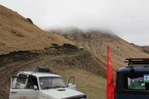 Следующим пунктом была Жемтала. Затем Ташлы-Тала, где на улицу выбежали сельские дети и окружили машины. При выезде из села ташлыталинцы остановили колонну и угостили участников акции шашлыком. Подкрепившись, раллисты отправились в Хазнидонское ущелье, в конце которого перешли через перевал на высоте 2800 м над уровнем моря. Интересно в одной маленькой республике застать все 4 сезона в один день. Так, на перевале участников заезда застал снег, а спустившись с него, водителям представилась возможность погреться под теплым майским солнцем.
