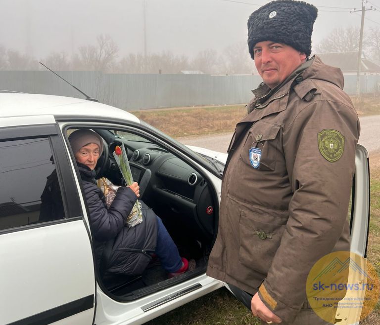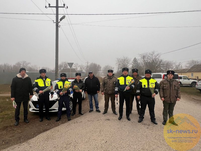В четверг 7 марта казаки-дружинники совместно с сотрудниками ГИБДД вышли на дежурство с букетами цветов и вручили их женщинам за рулём.