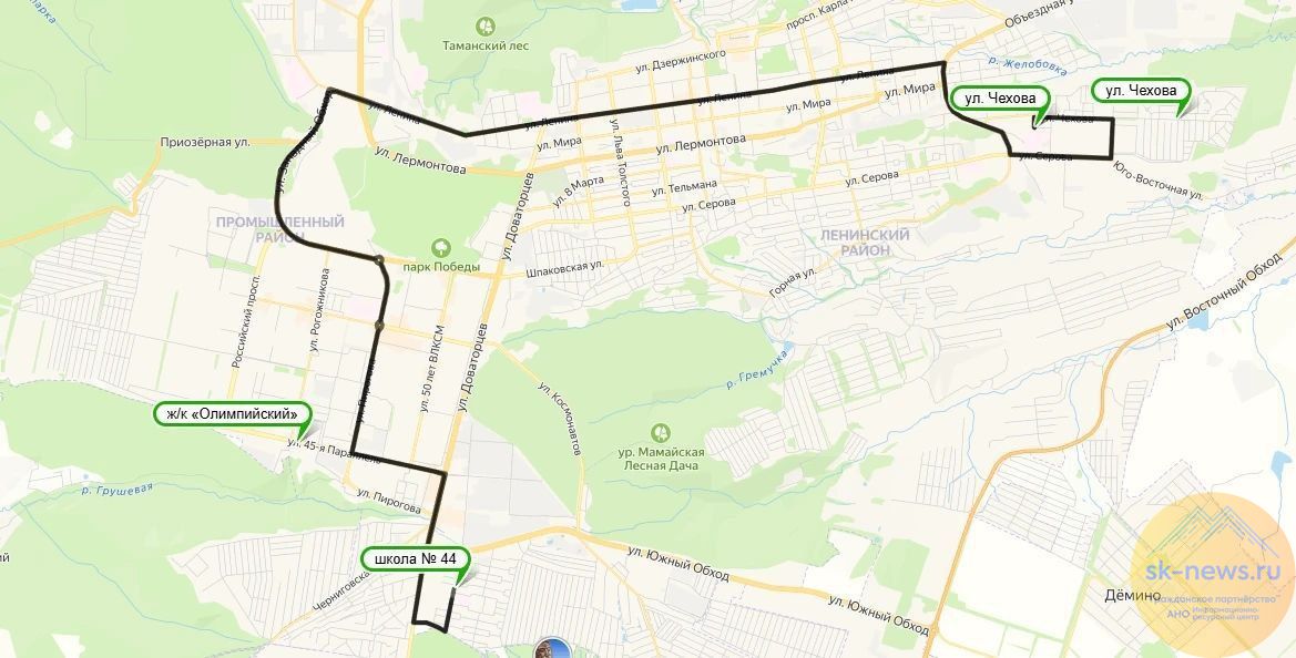 Интервал движения в будние дни составит около 10 минут. Схема движения останется прежней: от школы №44 транспорт будет следовать по улицам Доваторцев, 45-й Параллели, Пирогова, Западному обходу, проспекту Ленина, улицам Достоевского и Серова до конечной остановки.
