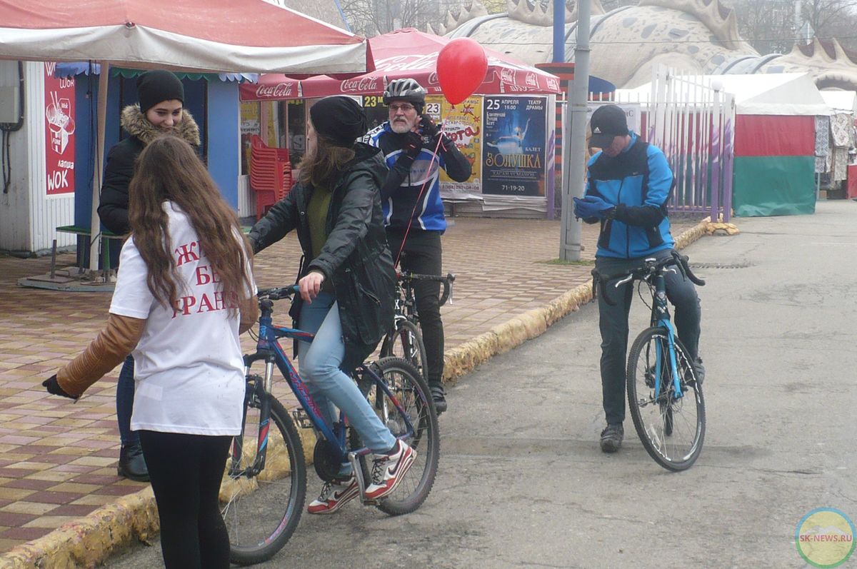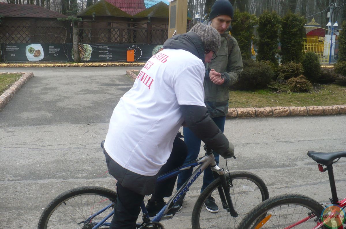 Организаторами акции выступили молодая общественная организация, ориентированная на слепых и слабовидящих людей, а также людей с инвалидностью «Жизнь без границ» и магазин «Адреналин», предоставивший трассу, техническое и медицинское обслуживание для таких участников. Цель акции, как сообщила SK-NEWS.RU руководитель организации Наталья Коваленко, поддержать проект – претендент на грант всекавказского форума «Машук-2018» 19-летнего студента медицинского вуза Ставрополя Матвея Коваленко, инвалида второй группы по зрению. Слабовидящий студент, обучающийся специальности «социальная работа», загорелся идеей создать в родном городе первую бесплатную велосекцию для детей-инвалидов, в первую очередь незрячих и слабовидящих. Средства нужны для закупки оборудования, ведь далеко не все родители инвалидов имеют деньги на саму велотехнику (стоимость тандема – более 50 тысяч рублей), оплачивать пилота, тренера, всё это достаточно дорого. В тандеме рулевой обязательно должен быть зрячим. Также необходимо помещение, где зимой ребята будут отрабатывать навыки на велосипеде-станке, на котором летом они ездят по трассам. Куратором проекта выступает доцент кафедры «Социальная работа» СтГМУ Валентина Горбунова. В своё время она была преподавателем знаменитой слабовидящей спортсменки с остаточным зрением Жени Цахиловой. Евгения по праву считается одной из самых известных и именитых спортсменок Ставропольского края, ранее она прославилась в пауэрлифтинге, а с 2016 года, вопреки всему, в том числе запретам врачей, покоряет велотрек. Поддержке её на чемпионате мира по паравелоспорту в Бразилии, где сейчас находится ставропольчанка, также организаторы посвятили эту замечательную акцию.