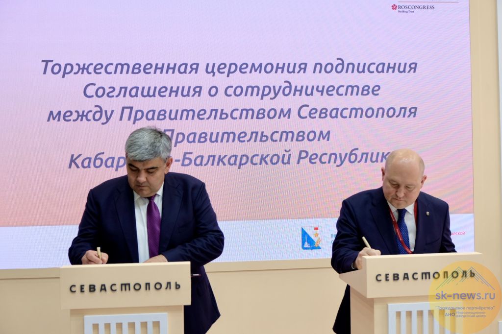 Глава КБР Казбек Коков и губернатор Севастополя Михаил Развожаев подписали соглашение о сотрудничестве на Петербургском международном экономическом форуме.