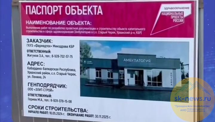 В селении Старый Черек Урванского района КБР продолжается строительство нового здания амбулатории. Старое было признано аварийным и не соответствовало нормам оказания медицинской помощи.